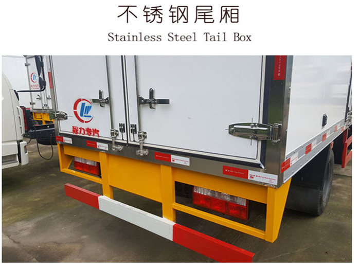 四、选装配置:导轨肉钩、T型通风槽、右侧开侧门、温度实时监控带打印装置、装海鲜厢体内部面料必须选装不锈钢制造、可选装12V-24V外接电源(车辆在停止时,厢体通过外接电源进行制冷)。