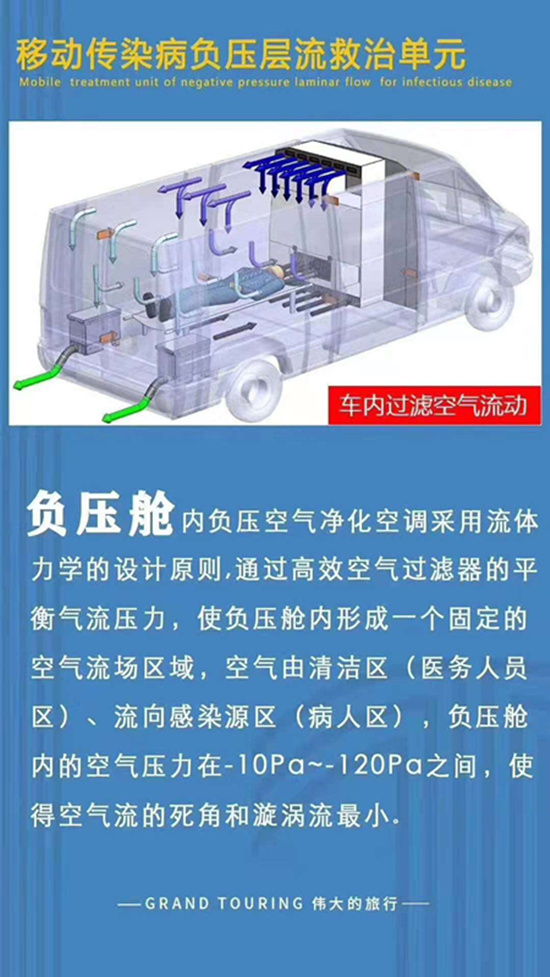 一、 负压救护车功能: 负压救护车是在原监护型救护车的基础上加装了负压、过滤、消毒系统。